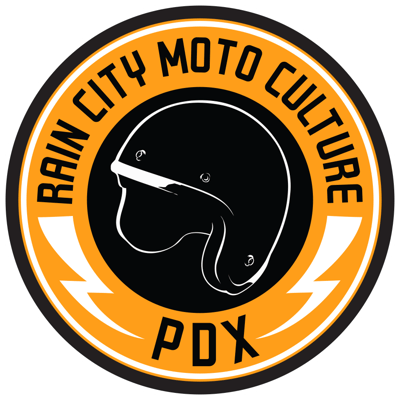 Rain City Moto Culture logo on the front and our first back printed shirt.